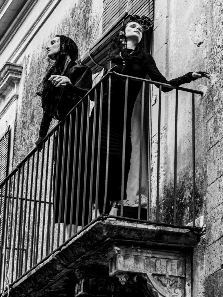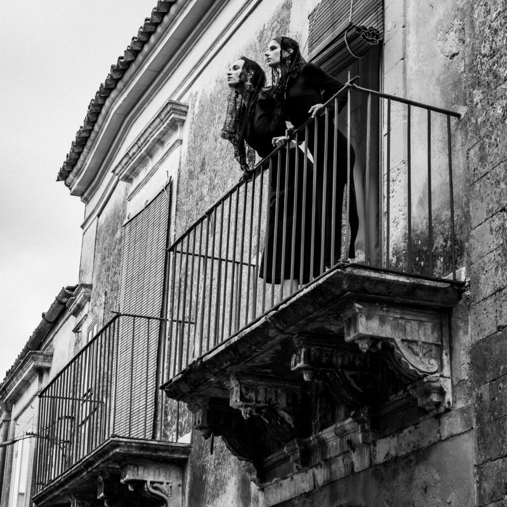 Inspiriert von der Ästhetik Dolce & Gabbanas zeigt diese fotografische Arbeit zwei Frauen auf einem Balkon – stolz, still, ausdrucksstark.